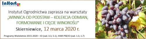 „Winnica od podstaw – kolekcja odmian, formowanie i cięcie winorośli”, które odbędą się 12 marca 2020 r. w Instytucie Ogrodnictwa w Skierniewicach.