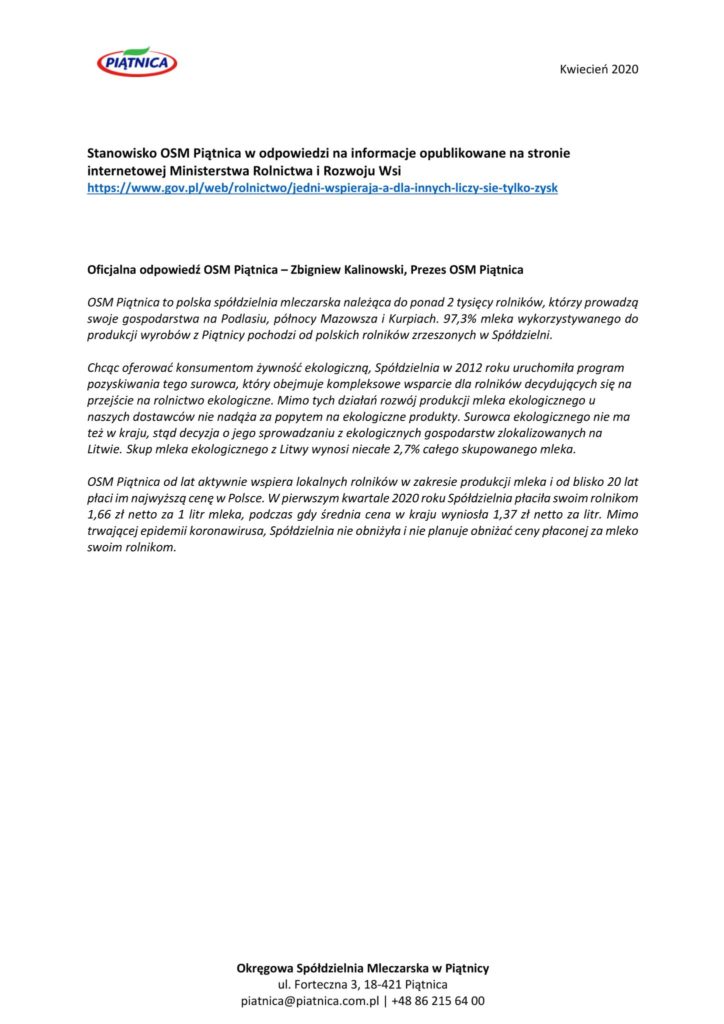 Poniżej publikujemy stanowisko OSM Piątnica w tej sprawie: