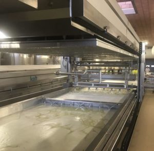 Wanna wstępnego prasowania jest jednym z najbardziej popularnych systemów wstępnego formowania sera na świecie. Jest kilka firm proponujących tego typu urządzenia jednak chcieliśmy zwrócić Państwa uwagę na firmę Kalt, której jesteśmy Partnerem w Polsce. Kalt produkuje wanny wstępnego prasowania z innowacyjnym systemem cięcia bloków sera bez żadnych ruchomych mat, siatek czy płyt za pomocą których ser jest transportowany w kierunku układu cięcia.