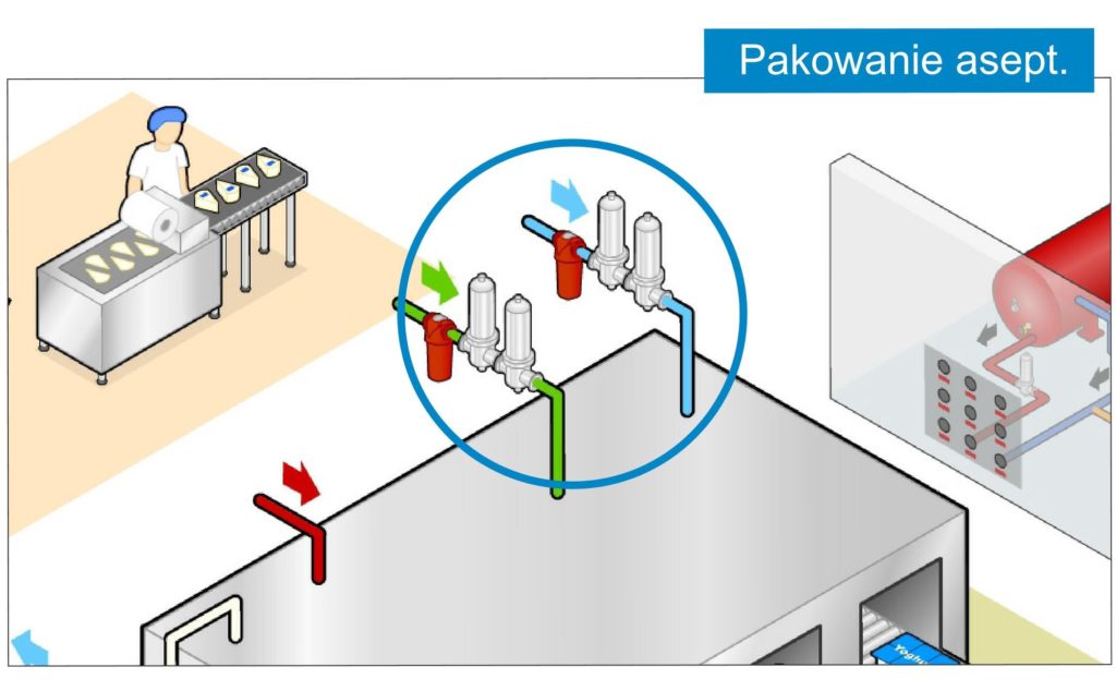 Linia ASEPT-X została zaprojektowana, by zapewnić sterylność gazu w krytycznych procesach zakładu mleczarskiego. Większość tych procesów stwarza ciepłe, wilgotne środowiska, idealne dla rozwoju i roznoszenia bakterii i innych mikroorganizmów. Mogą one zostać przetransmitowane poprzez aerozole, składające się z drobnych cząstek, unoszących się w powietrzu. Te ciekłe bądź stałe cząstki zawierają mikroorganizmy wewnątrz bądź na powierzchni.