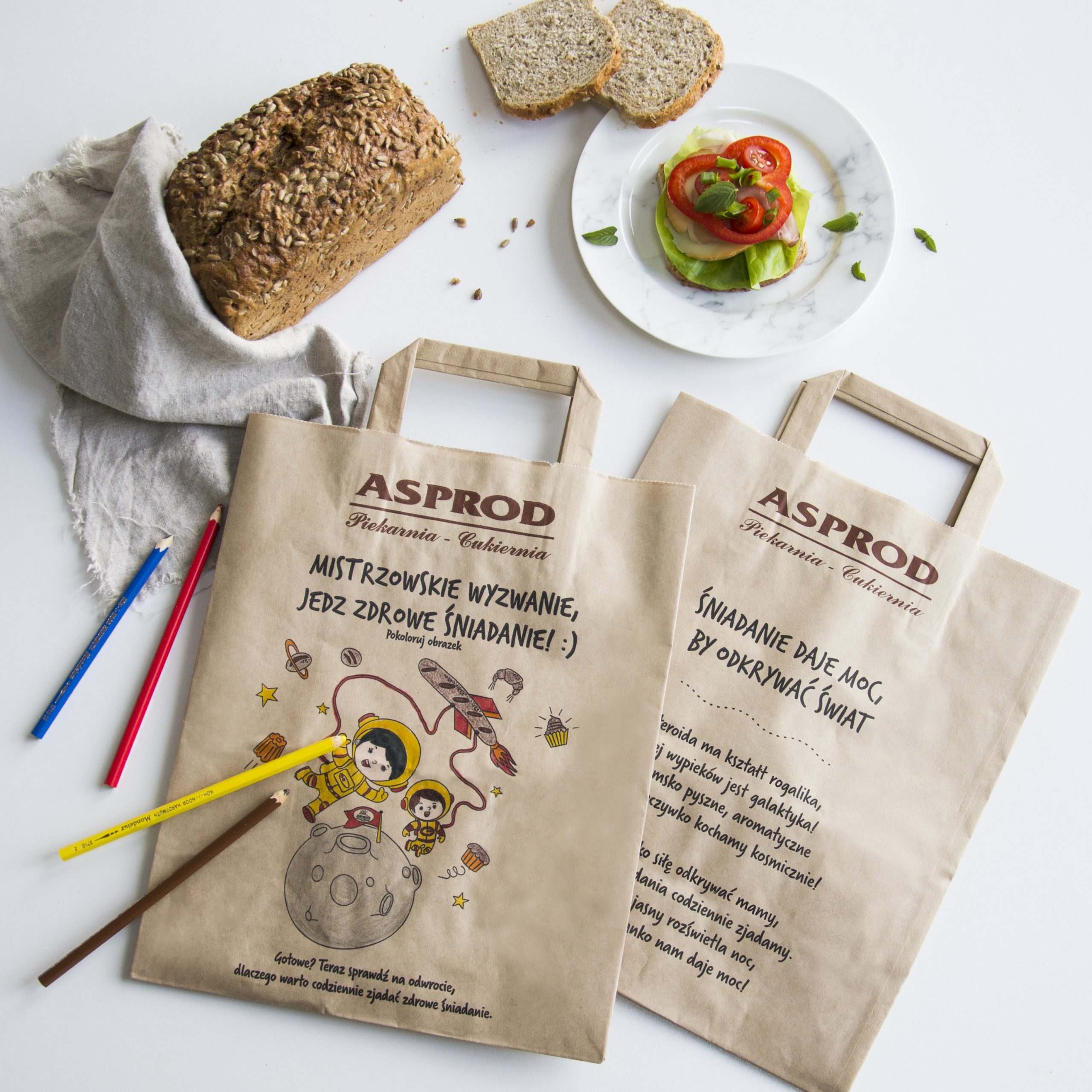 Piekarnia Asprod promuje zdrowe nawyki żywieniowe u dzieci również w swoich sklepach. W punktach sprzedaży Asprod już teraz dostępne są ekologiczne, papierowe torebki z kolorowankami dla dzieci oraz wierszykami, które zachęcają najmłodszych do zdrowego stylu życia i jedzenia śniadań. – Nasza inicjatywa dedykowana jest dzieciom, ale mamy nadzieję, że nie przejdzie bez echa także wśród dorosłych. To informacje przekazywane głosem najmłodszych członków rodziny często najskuteczniej do nas docierają. – mówi Agnieszka Dominiak z piekarni Asprod.
