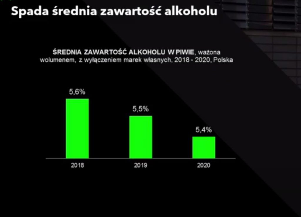 W piwie systematycznie spada zawartość alkoholu, co może oznaczać, że kupuje się go z innych powodów aniżeli zawarte procenty. Równocześnie dynamicznie rozwija się rynek whisky, rumu czy wina (wzrosty odpowiednio 15, 25 oraz 8 % rok do roku)