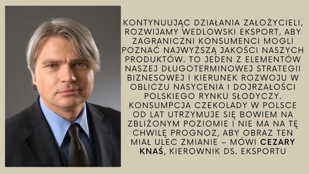 Analizując prognozy dynamicznie rosnącej konsumpcji w Azji, my także widzimy duży potencjał w krajach takich jak Chiny, Japonia, Korea Południowa, Indie czy Tajwan. To nowoczesne i rozwijające się gospodarki, które stanowią dobry fundament dla dalszego wzrostu naszego eksportu. Analizy wybranych azjatyckich rynków pokazały, że wedlowskie produkty spełnią oczekiwania tamtejszych konsumentów. Pomimo, że mieszkańcy azjatyckich krajów mają inne preferencje do słodkich smaków, są ciekawi produktów z zachodu, które często są postrzegane jako te z kategorii premium – wyjaśnia Knaś.