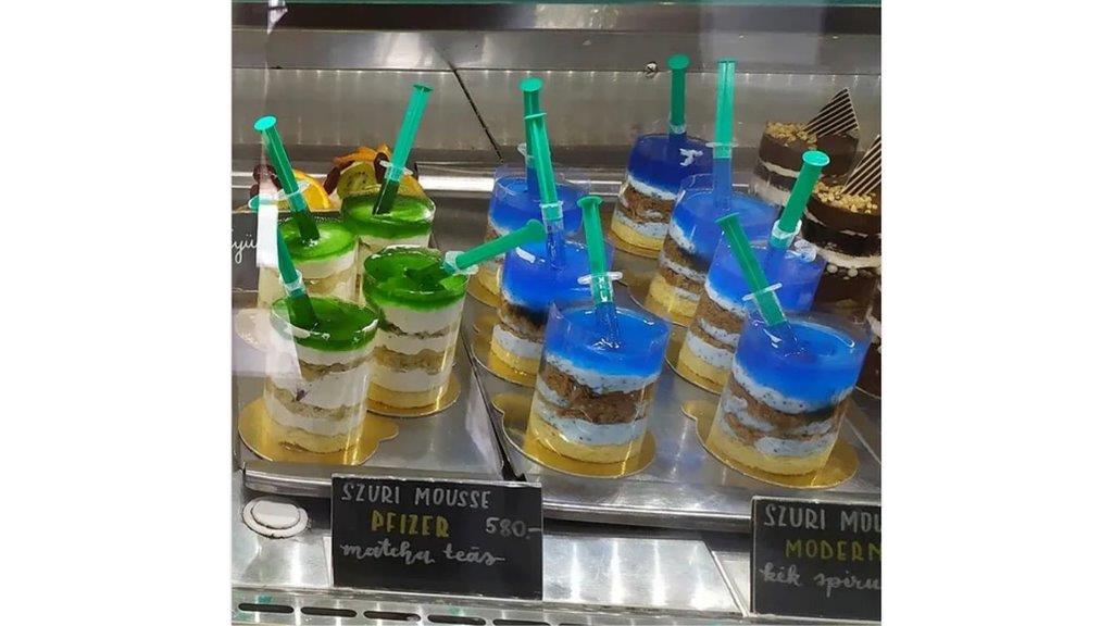 Cukiernia przygotowała przeróżne rodzaje pianek, podawanych ze strzykawkami, które można wysysać, zamiast jeść łyżeczką. „Zastrzyk Musu” występuje w pięciu wariantach smakowych noszących nazwy preparatów, którymi można zaszczepić się na Węgrzech.