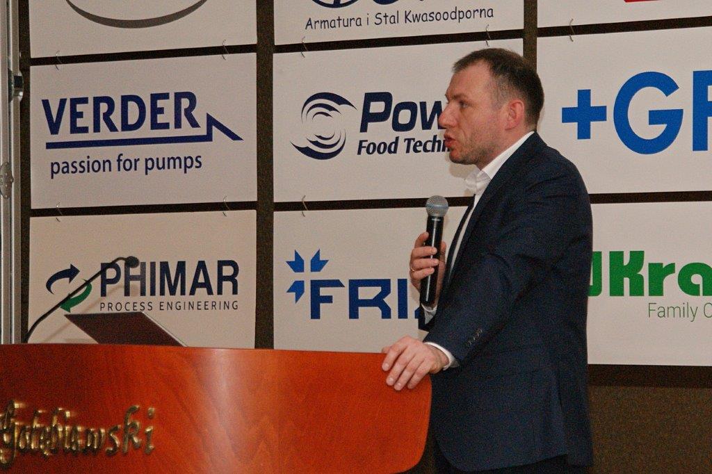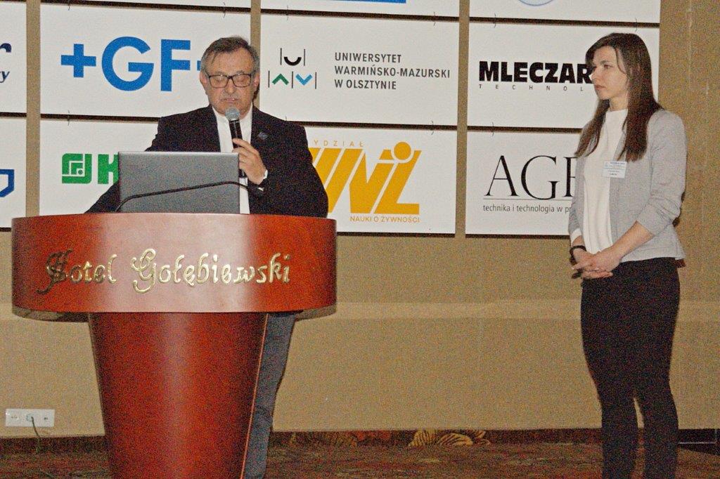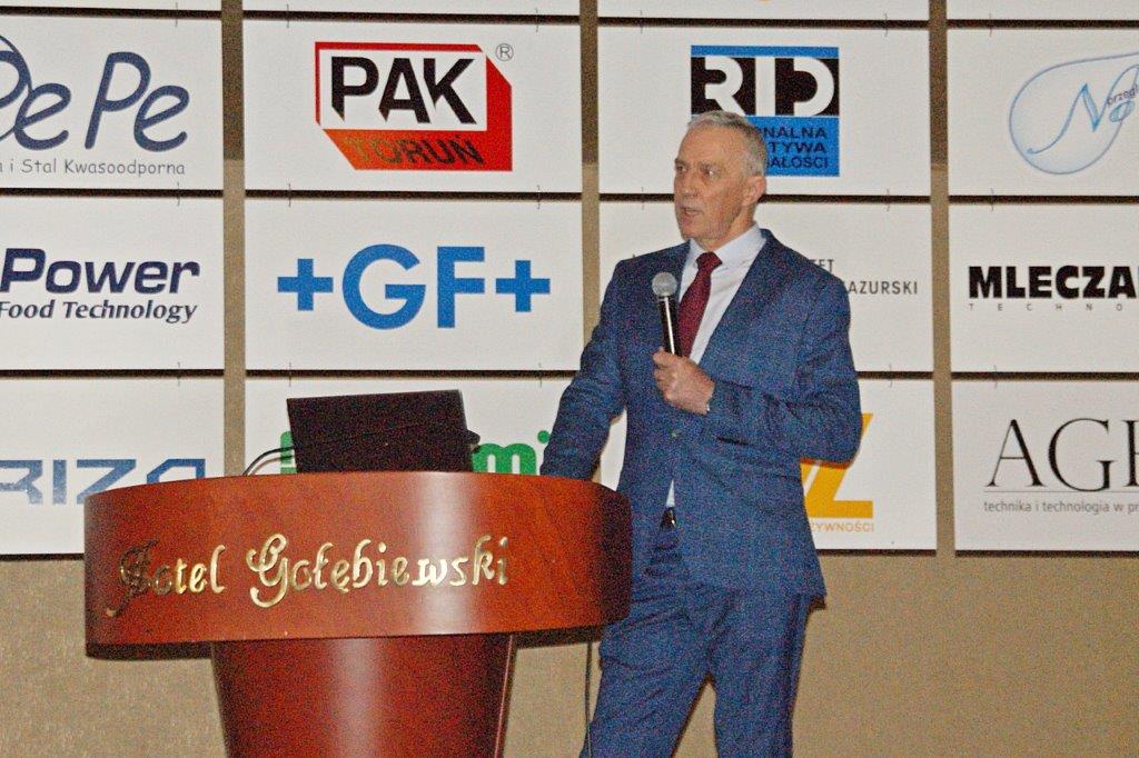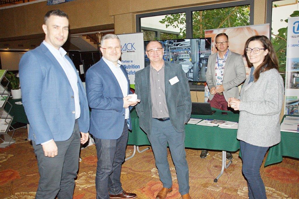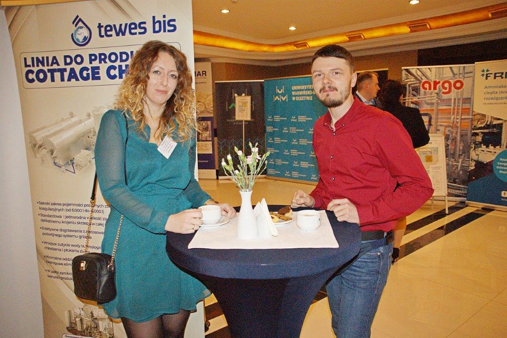 Michał Pietrasik z PFM omówił technologię nowoczesnej linii do pakowania przekąsek serowych.Trzyrzędowy automat do dozowania np. twarożków to jedno z rozwiązań, które prezentował Paweł Łagoda z firmy Trepko.Przemysław Leszczyński z firmy Weber omówił możliwości zastosowań zbiorników z tworzyw termoplastycznych w przemyśle spożywczym.Przedstawiciele firmy Frizo przy swoim stoisku. Stojący w środku Marcin Gozdyra opowiadał przed audytorium o nowatorskich rozwiązaniach chłodniczych.Janusz Kroll i Aleksandra Olech w imieniu firmy A-lima Bis przedstawili pomysły na recykling wody z oczyszczalni ścieków.Doświadczenie serowarskie w nowej odsłonie – to tytuł prezentacji Joanny Majewskiej z firmy Tetra Pak.Jerzy Caban reprezentujący Sealed Air przybliżył temat technologii pakowania uwzględniającą redukcję plastiku.Jakie są zalety inwestycji w magazyn produktów myjących i dezynfekujących? – na to pytanie odpowiedział Łukasz Samul z Ecolab.Do inwestowania ze wsparciem ze środków unijnych zachęcał Wiesław Wasilewski (Big-Pol Fundusze Pomocowe).Połączenie ekonomii z ekologią na przykładzie pakowania aseptycznego SIG Neo przybliżył słuchaczom Daniek Rekowski z firmy SIG.Zespół organizacyjny Seminarium Techmilk, czyli pracownicy Katedry Inżynierii, Aparatury Procesowej i Biotechnologii Żywności Wydziału Nauki o Żywności przy Uniwersytecie Warmińsko – Mazurskim w Olsztynie. – Cieszę się, że tegoroczne seminarium udało się zorganizować stacjonarnie. To spotkanie służy wymianie wiedzy, ale również kontaktom międzyludzkim. To dla nas wielka przyjemność – podsumował Fabian Dajnowiec (na zdj. w środku). W skład zespołu weszli również: Józef Warechowski, Waldemar Trzciński, Elżbieta Haponiuk, Malwina Banaszczyk, Katarzyna Stasiewicz, Joanna Lipka oraz Marcin Walter. Grupę wspierał zasłużony prof. Zygmunt Zander, pomysłodawca Techmilk-u.