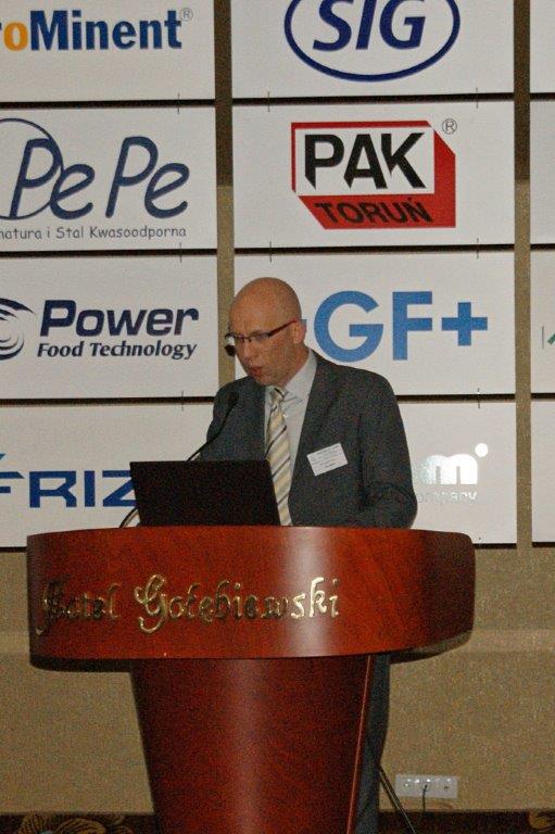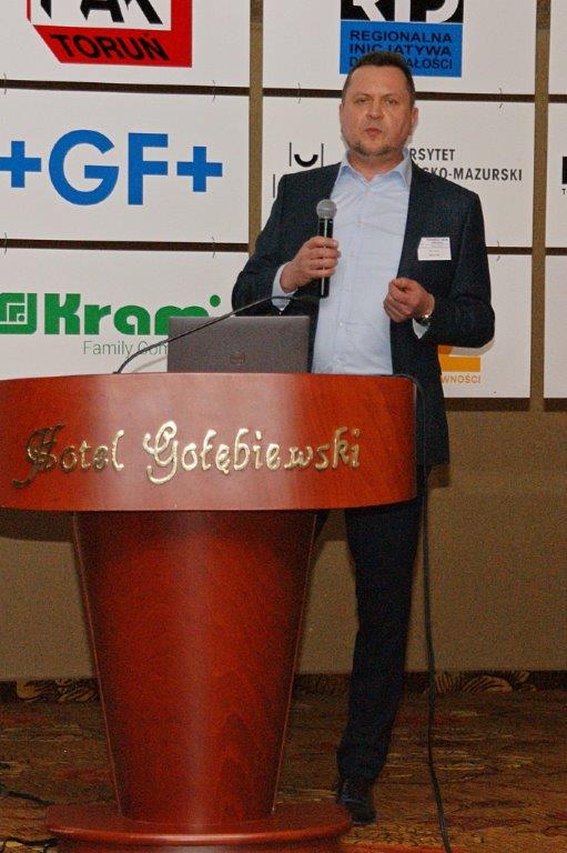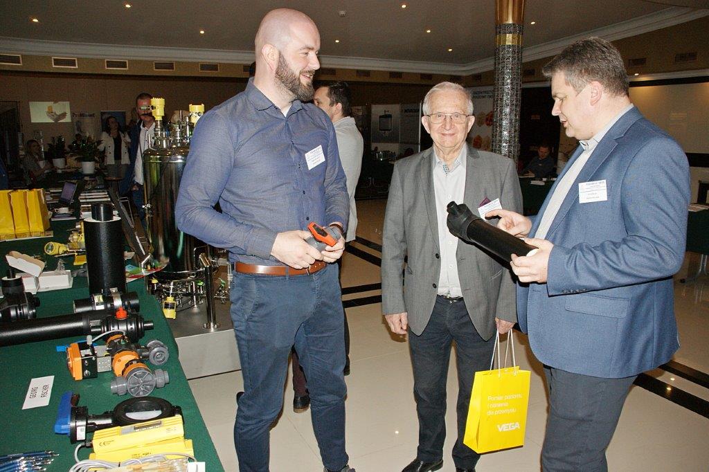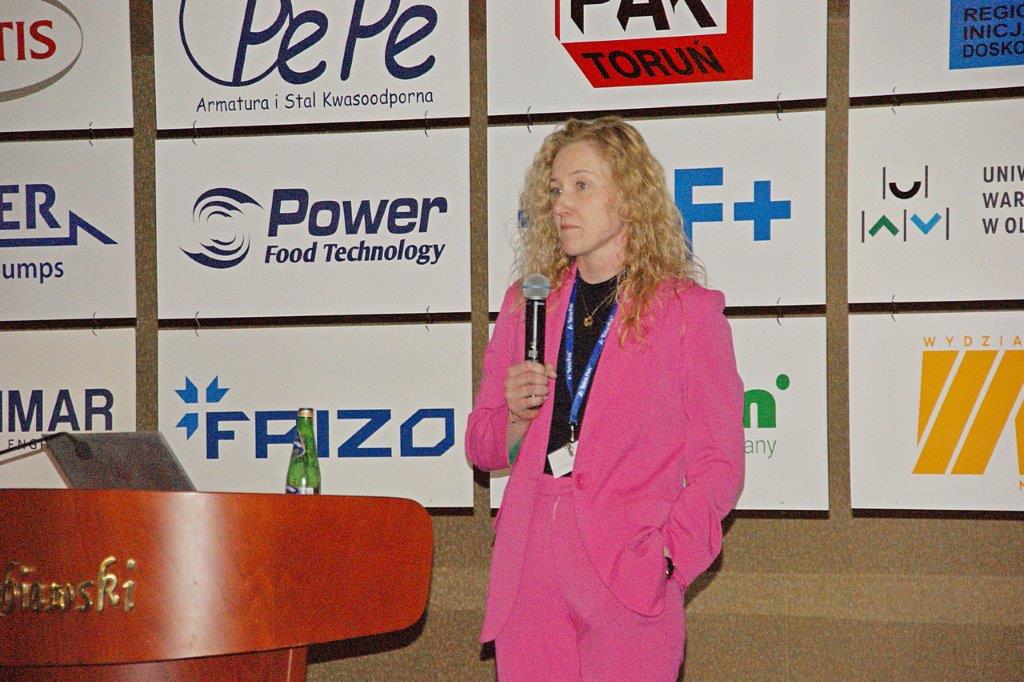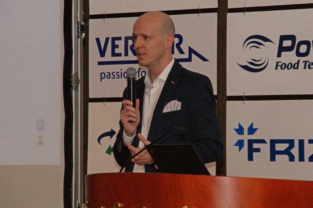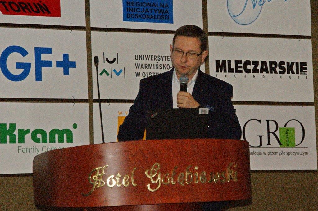 Michał Pietrasik z PFM omówił technologię nowoczesnej linii do pakowania przekąsek serowych.Trzyrzędowy automat do dozowania np. twarożków to jedno z rozwiązań, które prezentował Paweł Łagoda z firmy Trepko.Przemysław Leszczyński z firmy Weber omówił możliwości zastosowań zbiorników z tworzyw termoplastycznych w przemyśle spożywczym.Przedstawiciele firmy Frizo przy swoim stoisku. Stojący w środku Marcin Gozdyra opowiadał przed audytorium o nowatorskich rozwiązaniach chłodniczych.Janusz Kroll i Aleksandra Olech w imieniu firmy A-lima Bis przedstawili pomysły na recykling wody z oczyszczalni ścieków.Doświadczenie serowarskie w nowej odsłonie – to tytuł prezentacji Joanny Majewskiej z firmy Tetra Pak.Jerzy Caban reprezentujący Sealed Air przybliżył temat technologii pakowania uwzględniającą redukcję plastiku.Jakie są zalety inwestycji w magazyn produktów myjących i dezynfekujących? – na to pytanie odpowiedział Łukasz Samul z Ecolab.Do inwestowania ze wsparciem ze środków unijnych zachęcał Wiesław Wasilewski (Big-Pol Fundusze Pomocowe).Połączenie ekonomii z ekologią na przykładzie pakowania aseptycznego SIG Neo przybliżył słuchaczom Daniek Rekowski z firmy SIG.Zespół organizacyjny Seminarium Techmilk, czyli pracownicy Katedry Inżynierii, Aparatury Procesowej i Biotechnologii Żywności Wydziału Nauki o Żywności przy Uniwersytecie Warmińsko – Mazurskim w Olsztynie. – Cieszę się, że tegoroczne seminarium udało się zorganizować stacjonarnie. To spotkanie służy wymianie wiedzy, ale również kontaktom międzyludzkim. To dla nas wielka przyjemność – podsumował Fabian Dajnowiec (na zdj. w środku). W skład zespołu weszli również: Józef Warechowski, Waldemar Trzciński, Elżbieta Haponiuk, Malwina Banaszczyk, Katarzyna Stasiewicz, Joanna Lipka oraz Marcin Walter. Grupę wspierał zasłużony prof. Zygmunt Zander, pomysłodawca Techmilk-u.
