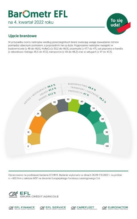 Wartość głównego indeksu Barometru EFL na IV kwartał 2022 roku wyniosła 47,2 pkt. Osiągnięty poziom jest o 0,4 pkt. niższy niż w III kwartale 2022 roku.