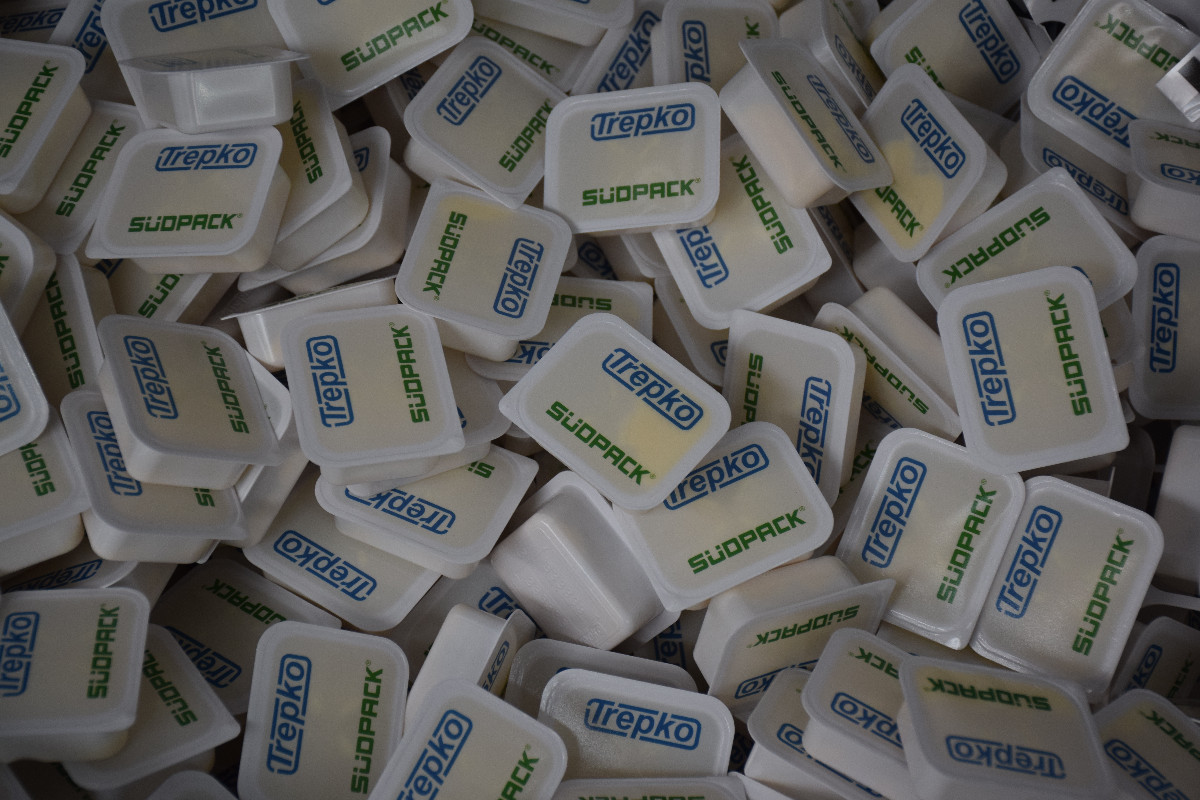 W Gnieźnie spotkaliśmy pilotażową linię do produkcji margaryny z maszyną do termoformowania, napełniania i zamykania miniporcji a także linię do formowania i owijania w kostki, zintegrowaną z pakowaniem zbiorczym i paletyzacją. Jest to nowy nabytek Trepko – już nie tylko pakują, ale także przygotowują produkt.