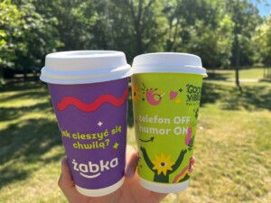 Kubki do kawy z letniej serii zostały stworzone z przymrużeniem oka. Na każdym z 4 wzorów znalazły się krótkie pytania i odpowiedzi, które zaskakują, bawią i nastrajają optymistycznie. To małe manifesty, które mają budzić pozytywne emocje u klientów Żabki. Dostępne są dwie pojemności – 200 i 400 ml – a hasła nawiązują do lata, zabawy i spotkań ze znajomymi. Kubki dostępne będą we wszystkich sklepach Żabka – również sezonowych.