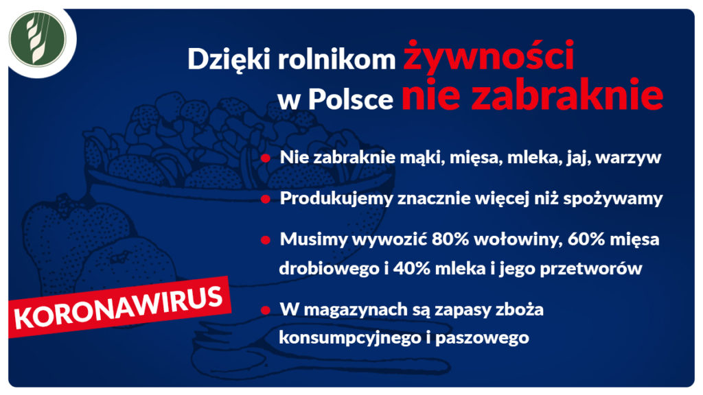 Mamy w Polsce nadwyżki mleka, mięsa i owoców. Jesteśmy jednym z większych producentów żywności w Unii. Żywności w Polsce nie zabraknie. Handlowcy natomiast proszą o chronienie kasjerek