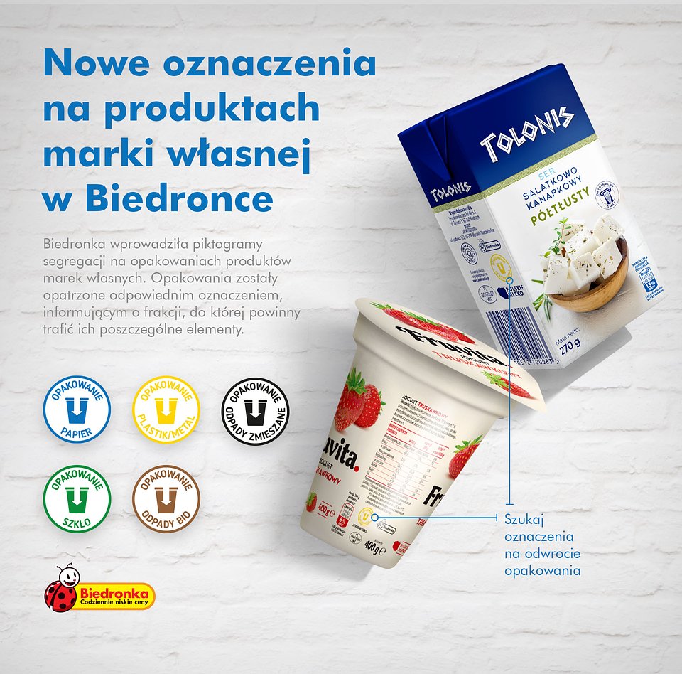 Do plastiku czy do zmieszanych? Przeciętny konsument podejmuje tę decyzję kilkanaście razy dziennie. Aby zachęcić klientów do segregacji odpadów sieć Biedronka stopniowo wprowadza piktogramy segregacji na opakowaniach produktów swoich marek własnych. Opakowania są opatrzone odpowiednim oznaczeniem, informującym o kolorze pojemnika na odpady, do którego powinny trafić ich poszczególne elementy. Odpowiednia gospodarka odpadami zaczyna się od […]
